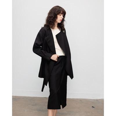 Pardesiu de temperament pentru femei, mărime mare, larg, Pardesiu mediu și lung pentru femei cu curea în talie