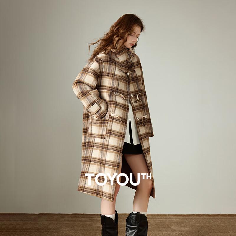 Chuyu Women's Loose Fit Plaid Wool Blend Hooded Coat