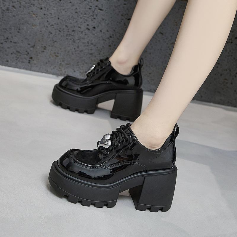 Loafers women's autumn 2025 new thick-soled thick-heeled inner height-increasing women's shoes versatile British style round head small leather shoes