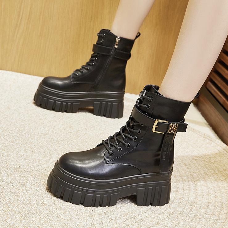 Thick-soled Martin boots for women 2025 autumn and winter new British style short boots versatile small inner height increase black boots for women