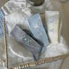 Grayish-blue Socks, Sweet Ribbons, Bows, Buttons, Autumn and Winter Piles of Socks