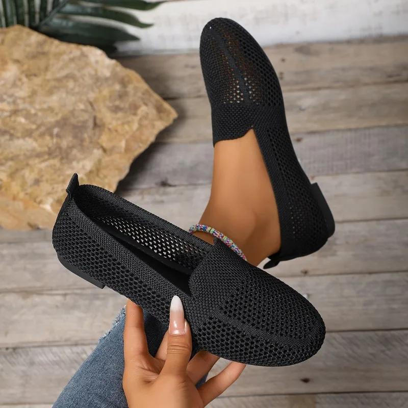 2025 Hot Sale New Mesh Women's Flats Outdoor Breathable Soft Bottom Slip on Flats Plus Size Comfortable Casual Walking Shoes