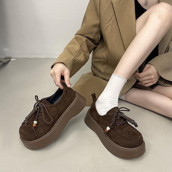Lace-up round head casual versatile platform single shoes autumn 2025 new literary and artistic style retro explosive loafers