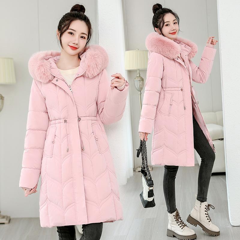 Jachetă căptușită cu bumbac Haine de iarnă pentru femei cu guler mare de blană și puf Nouă Groasă Lungă Coreeană Talie Jachetă căptușită cu bumbac.