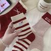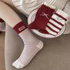 Female Autumn and Winter Striped Cloth Label Bowknot Polka Dot New Year Benming Year Red Tube Pile Socks