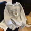 American Vintage Cartoon Embroidered Short-Sleeve Hooded Sweatshirt - Loose Fit for Spring and Autumn