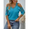 Bluză de vară sexy cu bordură de dantelă și culoare uni pentru femei