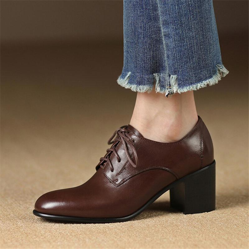Fashion New Spring Genuine Leather Women Shoes Round Toe Women Pumps Shoes for Women High Heel Chunky Heel Shoes Zapatos Mujer Loafers