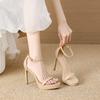 Fashion Women's High Heels Black Apricot Party Dress Shoes Elegant Thin High Heeled Sandals Open Toe Ankle Strap Wedding Banquet Shoes