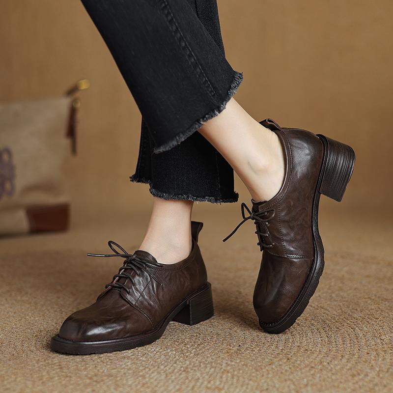 Modă 2025 Pantofi cu toc pentru femei Primăvară Toamnă cu șireturi Vârf rotund Confortabili Concisi Piele naturală Mocasini Pantofi Femeie Pantofi casual de lucru