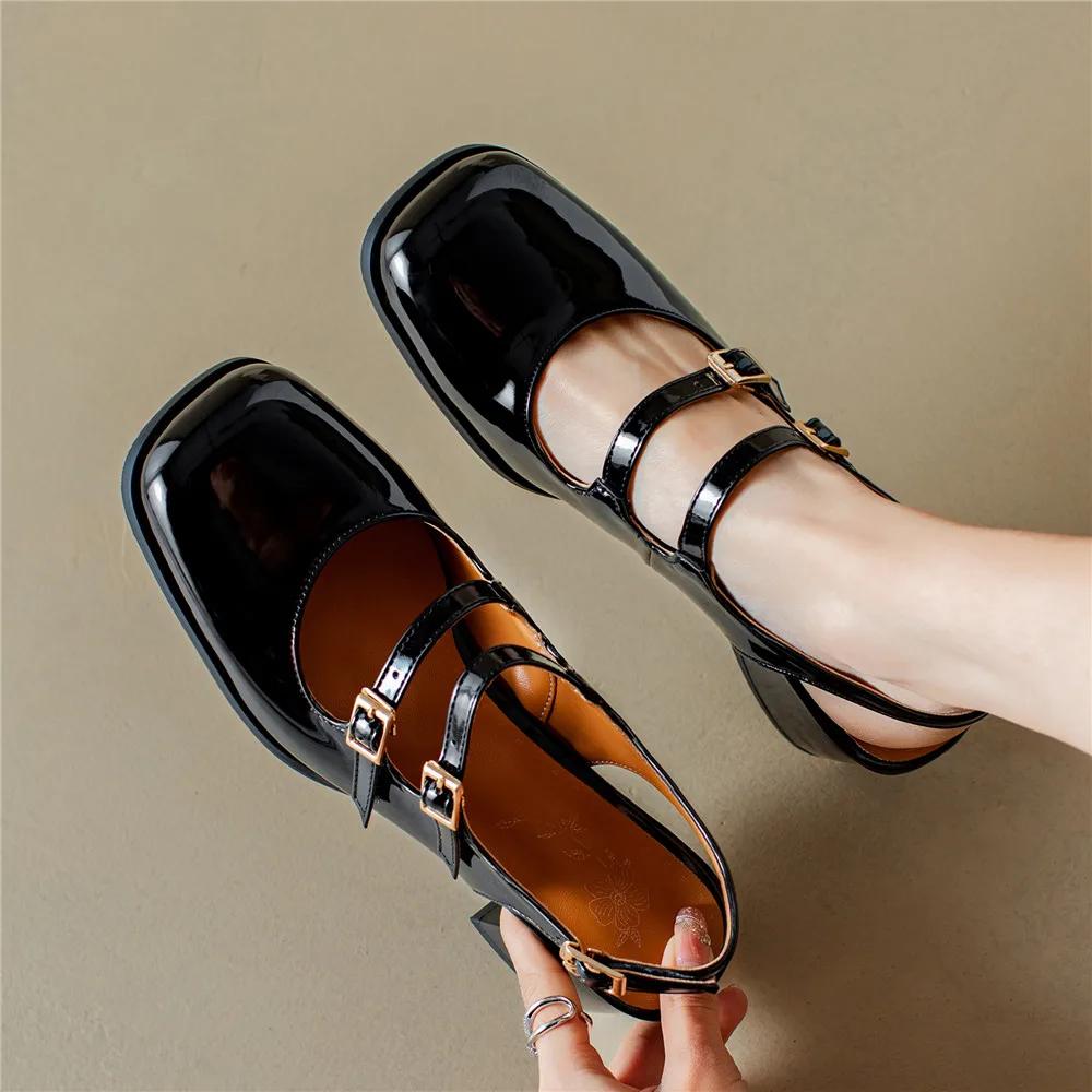 Modă Retro Toc Gros Toc Mediu Pantofi Mary Jane Cu Vârf Pătrat Sandale Argintii Negre Vară Nou Mărime Mare 32-46 Pantofi de Damă Modă