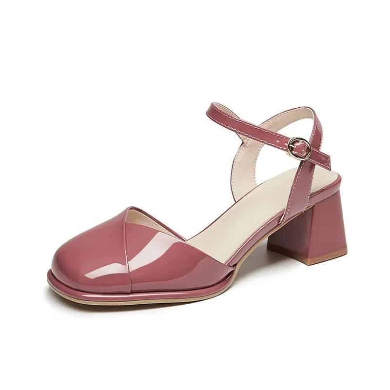 Fashion Female Pink Comfort Spring & Summer Hollow Out Office High Heel Shoes Women Fashion Black Leather Shoes