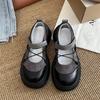 Fashion Round Toe HOOk&LOOP Mary Janes Women Shoes Non-Slip Thick Bottom Ladies Shoes Retro Height Increasing Casual