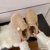 Thick-soled heightening fluffy slippers women's shoes outer wear 2025 new autumn and winter high-end plush cotton slippers