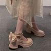 Ladies Shoes 2025 Brand Buckle Strap Women's High Heels Butterfly-knot New Dress String Bead Shallow Mary Jane Shoes