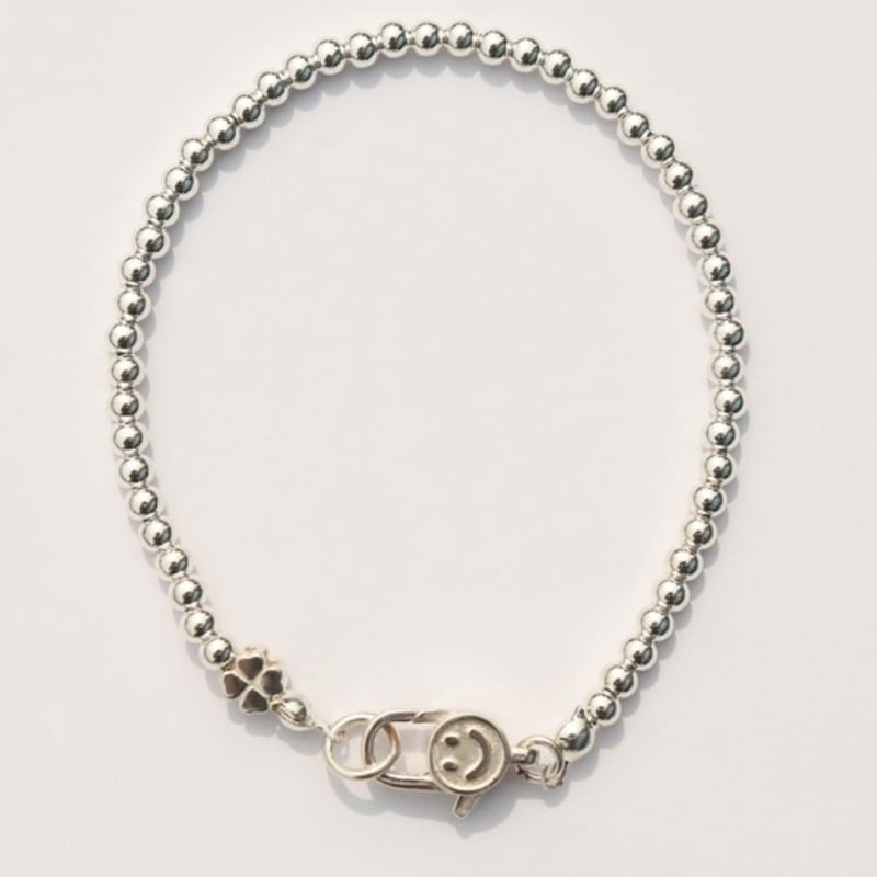 BONBEAU 3mm silverball clover smile lock Bracelet 925 silver sterling silver clover charm smile lock 3mm ball bracelet