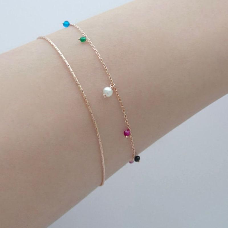 VOYONN Silver Double-Line Bracelet Rose Gold Setting Beads 0008