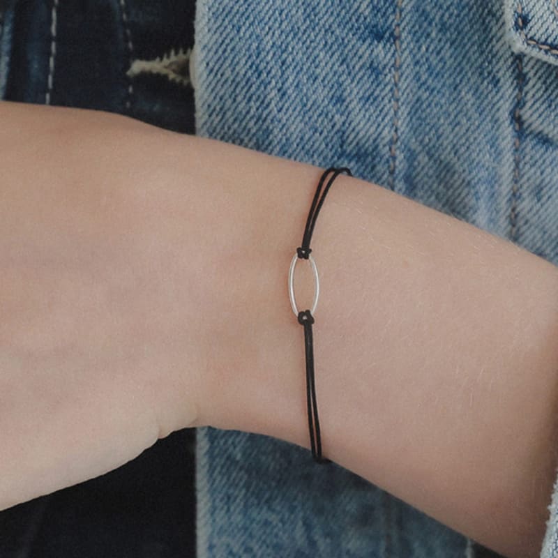 J.Lauren Oval Ring Two Lines Black Silk Cord Bracelet B01005