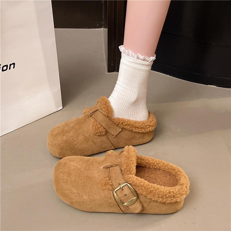 Mao Mao shoes women's outer wear 2025 autumn and winter new Korean version versatile velvet one-pedal warm thick-soled cotton slippers