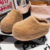 Lamb wool baotou half slippers women wear thick-soled high-end fluffy shoes 2025 autumn new Internet celebrity lazy shoes