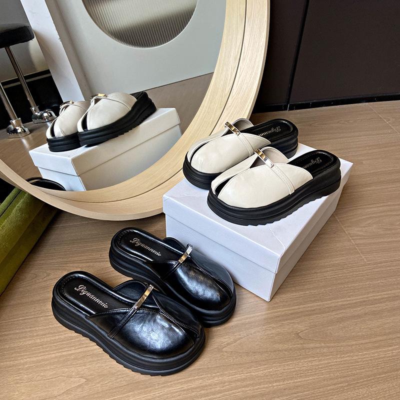 European Station thick-soled bag head half slippers women's 2025 summer new wear fashionable versatile one-pedal lazy slippers