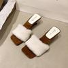 Papuci pufoși premium noi, cu toc înalt, din catifea, din bumbac, 2025, purtați toamna și iarna, papuci răcoroși cu toc înclinat