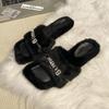 Thick heel fluffy slippers women's autumn and winter wear advanced sense 2025 new Internet celebrity rhinestone warm cotton drag ins tide