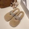Premium sense rhinestone fluffy shoes women's winter wear 2025 new one-pedal cotton shoes winter velvet cotton slippers