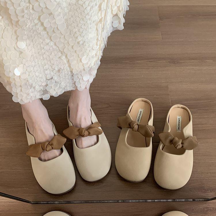 Flat-bottomed bag head half slippers women's shoes wear new spring and summer pregnant women lazy half tray gentle evening cool slippers