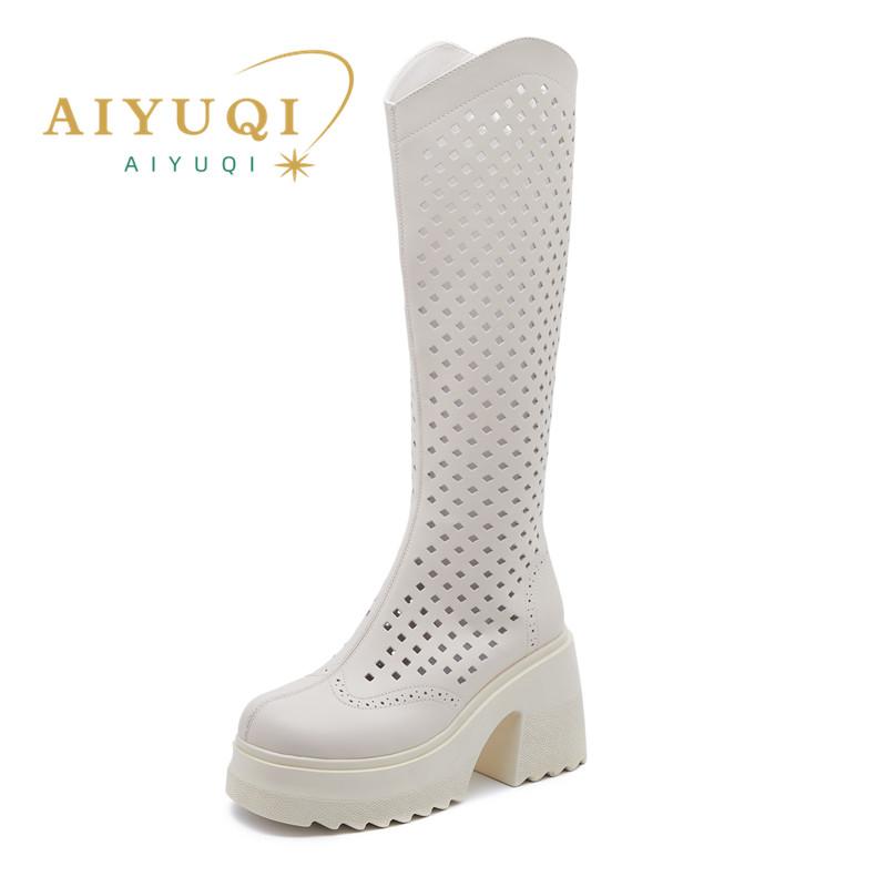 Fashion AIYUQI Mesh Boots Women 2025 New Genuine Leather High Heeled Boots Women Summer Platform Knight Boots Women