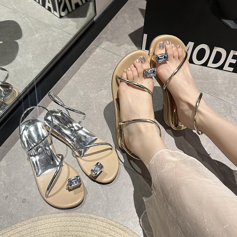 Fashion Gold Silver Women's Sandals 2025 Summer New Ankle Strap Wedge Sandals Women's Fashion Elegant Beach Women's Shoes Ladies Shoes
