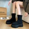 Modă 2025 Toamnă Nou Botine din Material Elastic pentru Femei cu Tălpi Groase cu Platformă Botine la Modă pentru Fete Pantofi Gotici Botine pentru Femei Până la Genunchi