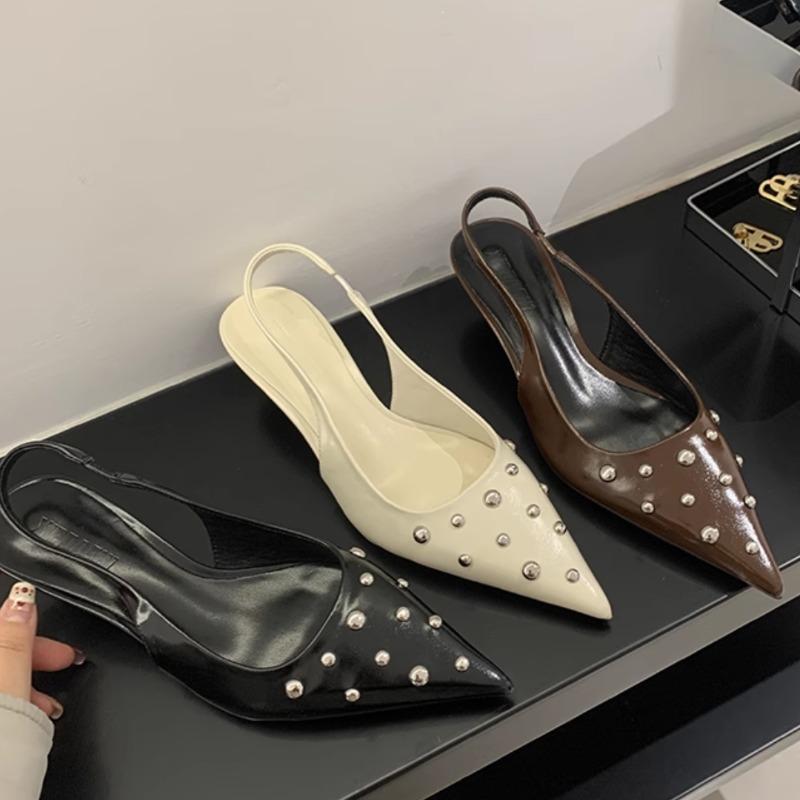 Modă 2025Vară Pantofi Noi de Damă Negri cu Vârf Ascuțit Sandale cu Toc Înalt la Modă Sexy Respirabili din Piele PU cu Ținte Pantofi Casual