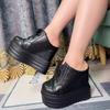 Fashion 14CM Summer new half slippers round toe without heel inside increase women sneakers Breathable canvas Platform Wedge shoes