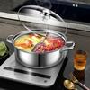 New 304 stainless steel clear soup pot Double-flavor hot pot induction cooker pot Erwei hot pot pot large capacity household pot