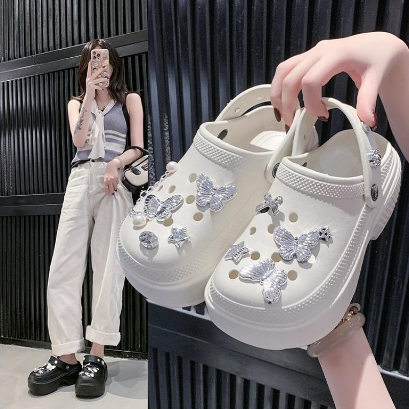 Fashion Bling Pearls Diamond Cute Bear Decor Vented Clogs Slides 7CM Platfrom Outdoor Beach Sandals Summer Girls Slippers Women Shoes