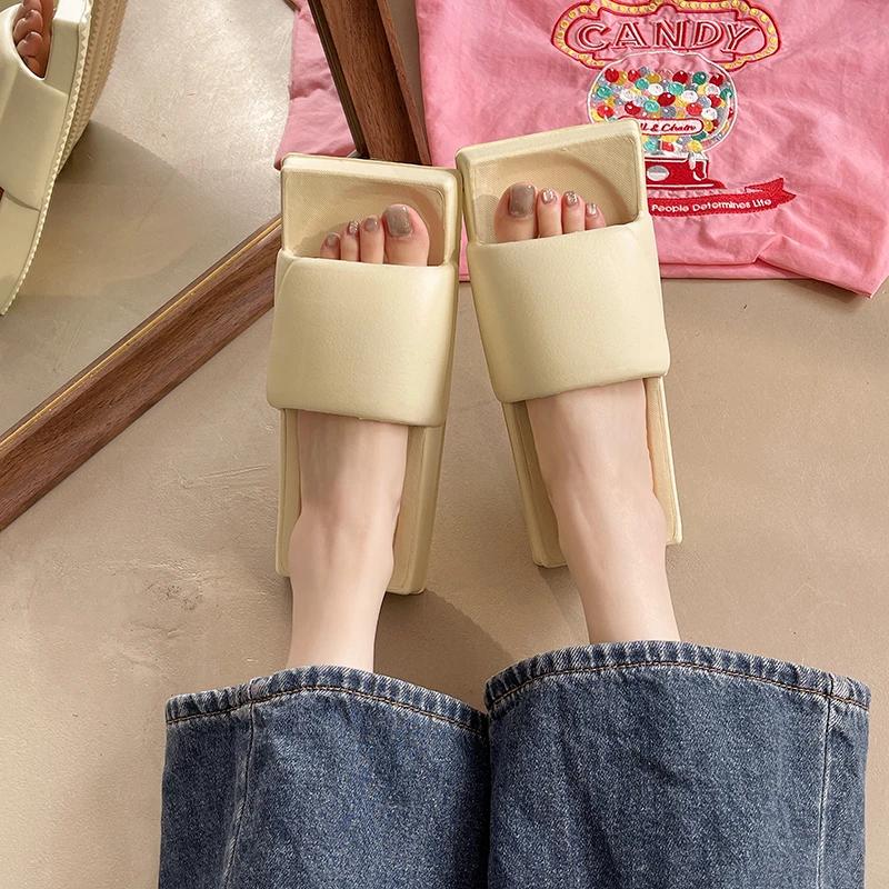 Fashion New Summer Women Home Slippers Clogs Square INS Solid Flat Bottomed Non-Slip Girl Slides Home Indoor Bathroom Shoes