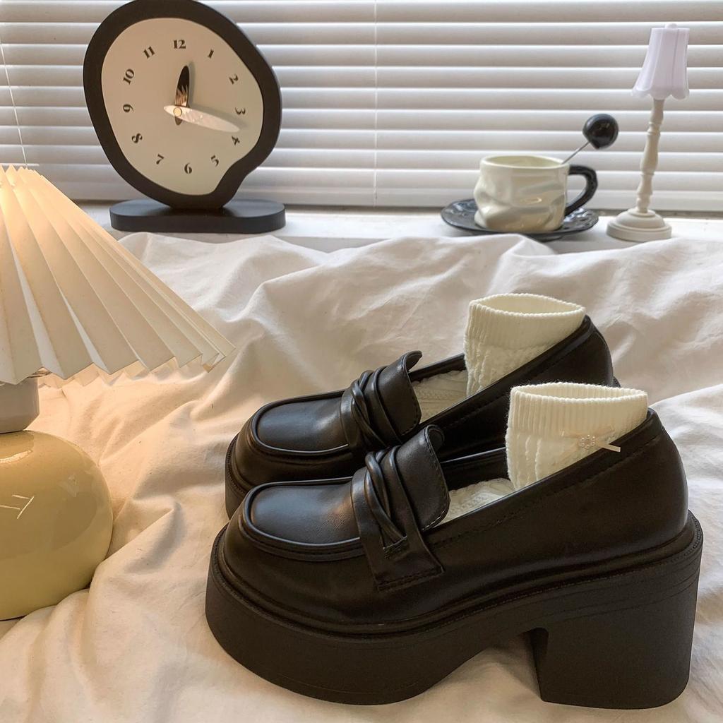 Design sense black versatile thick heel thick sole Mary Jane small leather shoes women's autumn new models