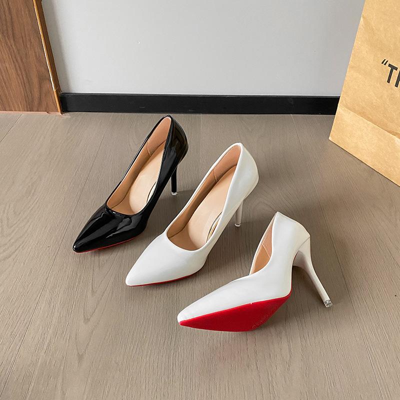High heels, thin heels, femininity, autumn fashion, high sense, large size nude patent leather, not tired feet, light mouth single shoes