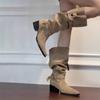 But knee boots women's autumn and winter khaki suede fashion boots women's thick heel thin pleated piled boots