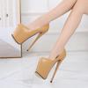 Pantofi cu toc înalt Fashion Fetish Extremi Platformă 19cm Dungi Satinate Sexy Femei Bărbați Dans la bară Pantofi de poză Mărime Mare 50 Aur Toc subțire de fier