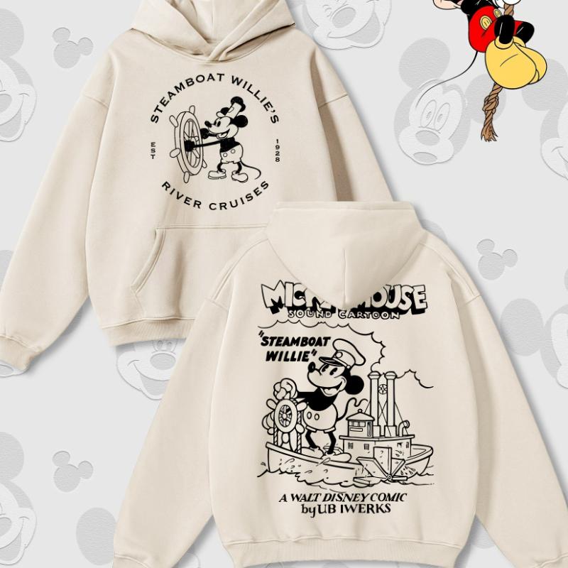 Disney Cartoon Print Autumn and Winter Hooded Sweater Crew Neck Long-sleeved Hoodie Loose Casual Style Suitable for Men Women