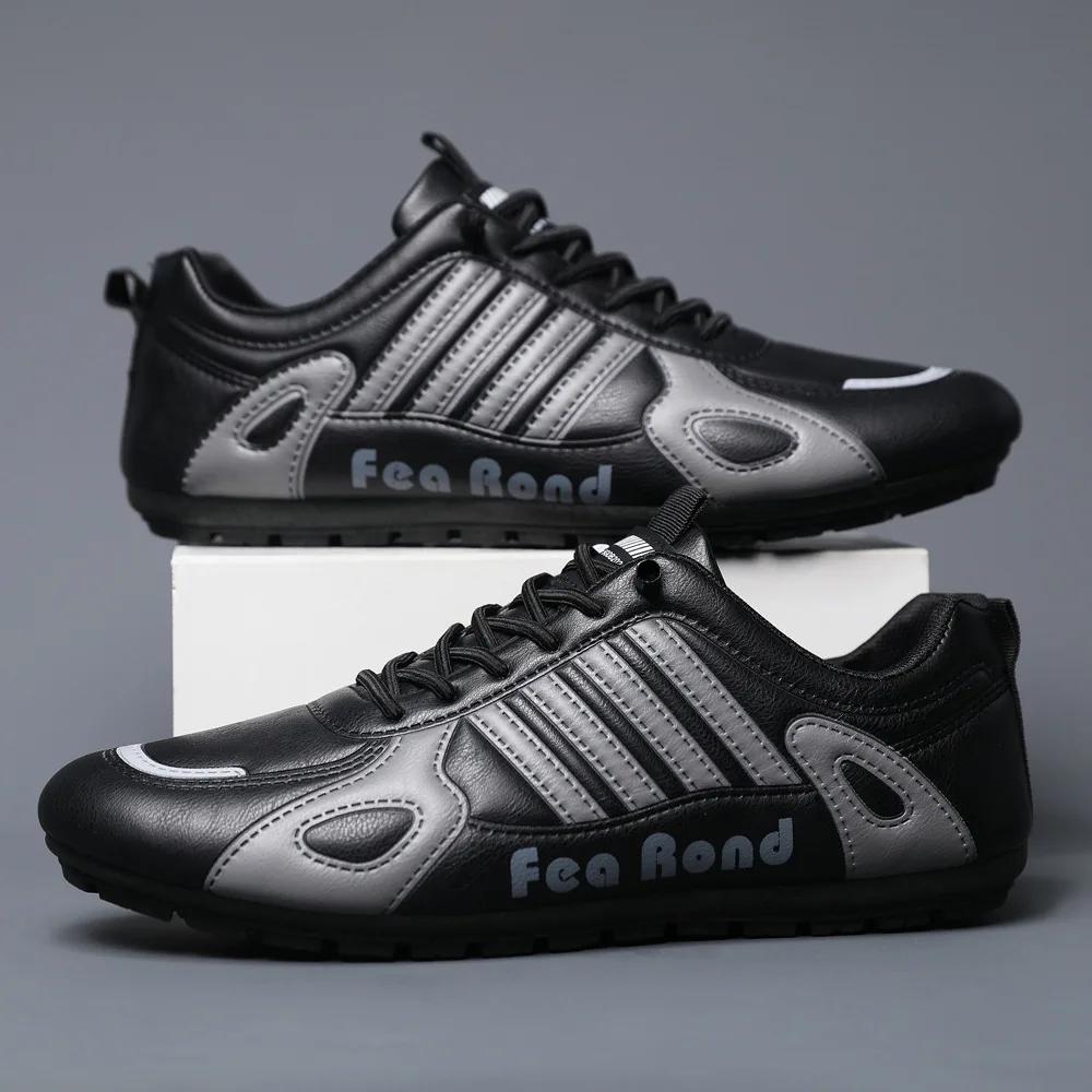 Fashion Men Leather Shoes Flat Bottomed Casual Sports Shoe Breathable Skateboard Board Walking Travel Running Sneakers Female Loafers