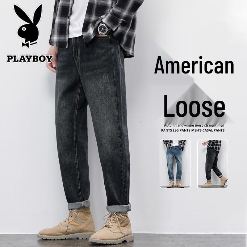 Playboy Men's American Retro Loose Straight Fit Jeans
