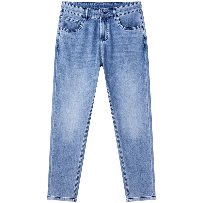 Experience comfort and style with NVG YOUNG Men's Tencel Washed Tapered Denim Jeans. Perfect for spring and summer, these casual blue jeans feature a natural waist, zipper fly, and a relaxed tapered fit. Made from a breathable blend of cotton, Tencel (Lyocell), polyester, and spandex, they offer slight stretch for daily wear and travel. The thin fabric and washed finish ensure a soft feel and modern look.