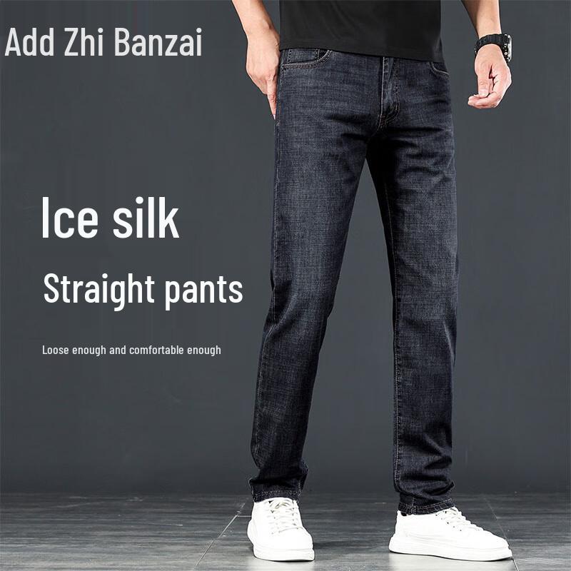 Zengzhi Men's Ice Silk Loose Straight-Leg Denim Jeans