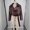 Elevează-ți garderoba cu acest palton scurt maro sofisticat, conceput pentru femeile care apreciază moda europeană și americană de înaltă calitate.. Prezentând un decolteu croit și mâneci lungi, acest palton combină eleganța cu funcționalitatea.. Aspectul luxos este îmbunătățit de detaliile din blană PU, în timp ce haina în sine este confecționată din material poliuretanic durabil.. O talie legată adaugă o notă la modă, permițându-vă să ajustați potrivirea după bunul plac.. Perfect pentru a adăuga un strat chic oricărei ținute, acest palton este un must-have pentru femeia modernă.