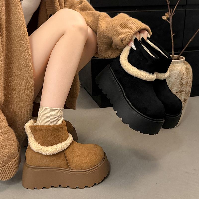Women's fashion lightweight soft sole winter warm fur one snow boots padded lining non-slip casual sports cotton boots fur cotton shoes