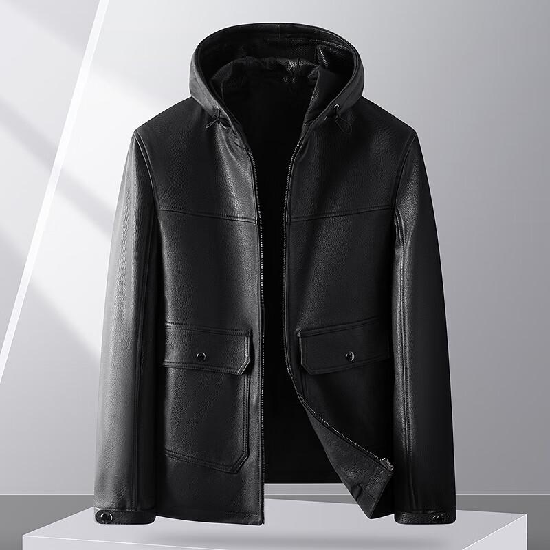 FAPAI Men's Hooded Sheepskin Leather Jacket