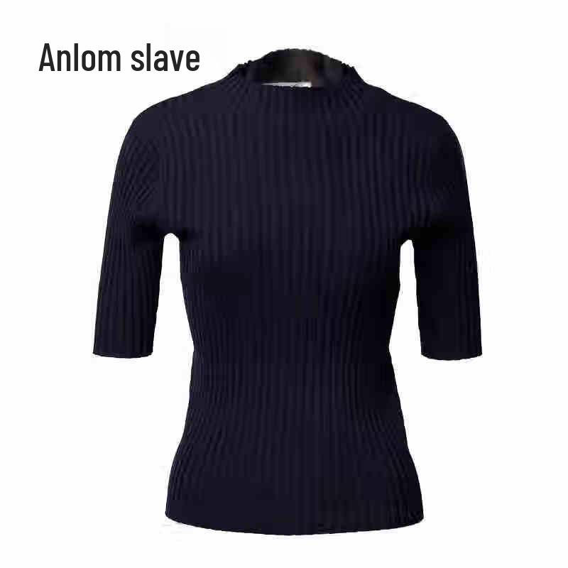 Anlom Women's Slim-Fit Retro Half-Sleeve Round Neck Pullover Top